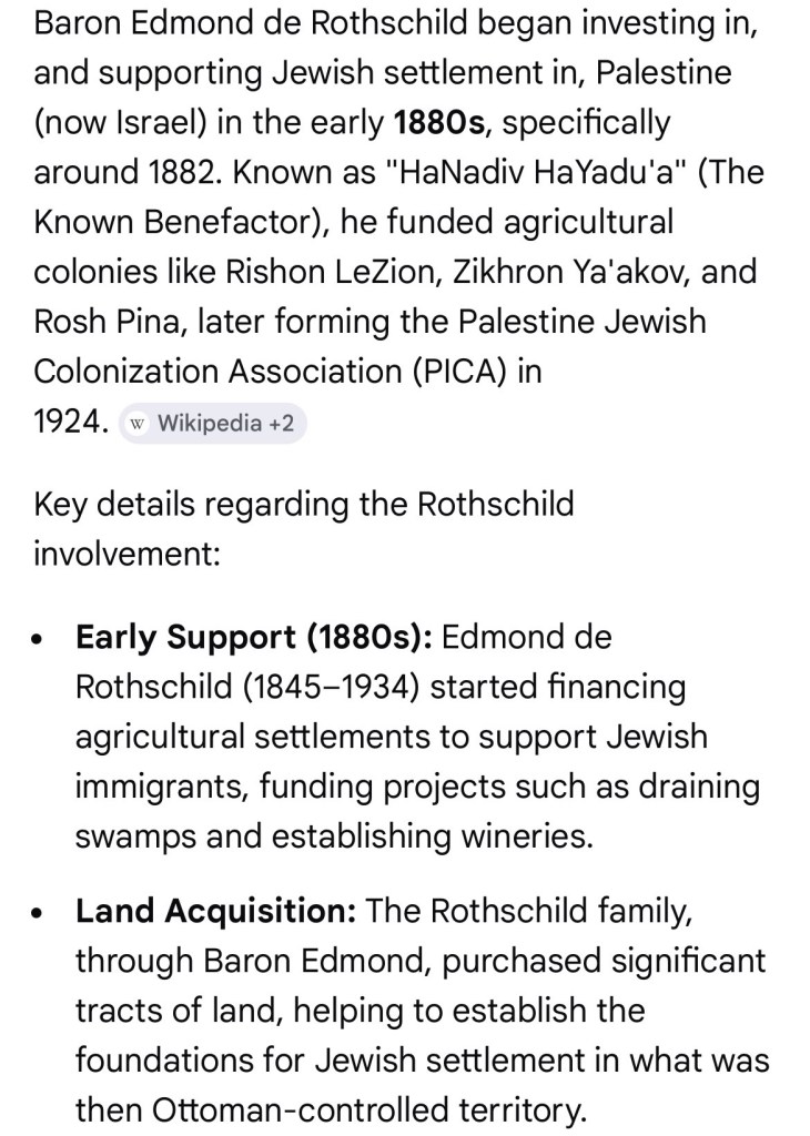 I was waiting at the DOOR to bring up Edmond James de Rothchild, nigga. EVERY SINGLE PIECE OF EVIDENCE “proving” Israel existed at any point in time is in the era of their reign. Its conjecture perpetuated as truth through their blood money. Let’s get into it, sis, because Judaism is real but Israel is not. The above poster recruiting people in 1918 was a year after the Balfour Declaration in 1917, where Walter Rothschild secured British support for a Jewish State. An event I previously mentioned (read Proof: The Rothschilds Rewrote The Bible). He was continuing the work of Edmond James de Rothschild, who started buying land in Palestine in the 1880s.