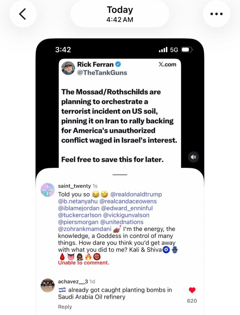 March 8th 2026 at 4:30am I commented that no one was going to fall for their racists manipulations against Islam anymore. Informing the, their old tactics were no longer going to work. Approximately 12 minutes later, March 8th 2026 4:42am I was censured for telling the truth. The Rothchild’s did the same thing when I called them out for their December 2025 terrorist plot (read Proof: Rothschilds Behind Future Terrorist Attack).