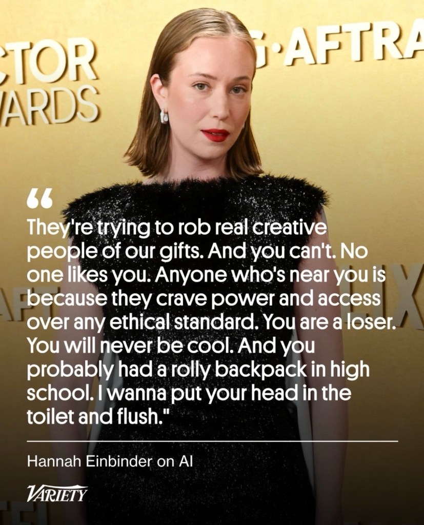 Preach. Quality over quantity, when I point something out and it slaps. Hannah Einbinder has earned my good graces. THE AI ARCHITECTS ARE FUCKING LOSERS (read AI Innovators Are Ugly And Mad). They’re the ugliest group of people, they’re socially retarded and have autism, making them idiot savant programmers, they aren’t intelligent in any other field and it shows from this shitty product. They’re nerds trying to get revenge for being exactly that (read The True Intent Of Artificial Intelligence).