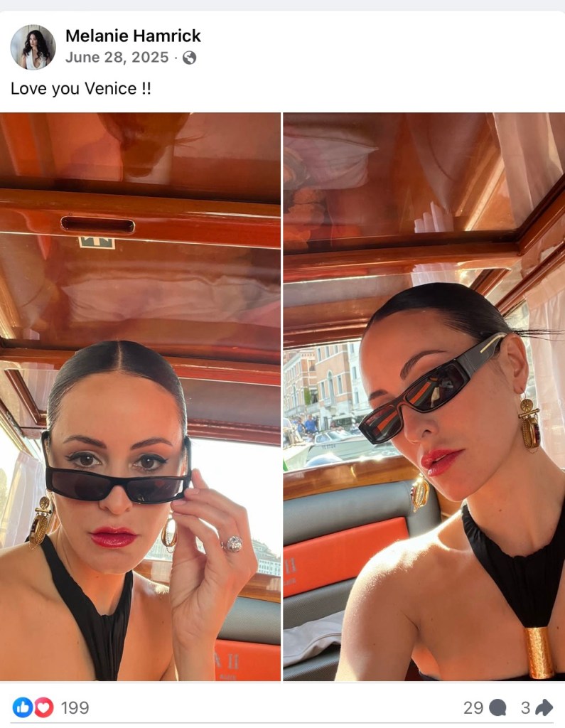 If it wasn’t true Melanie Hamrick wouldn’t be blackmailing their asses, scoring invites to events. Especially a ceremony as intimate as a wedding (read Melanie Hamrick: The Ultimate Wannabe). You’ll find the person they only met once, and were force to take a photo with, on her way by gondola in Venice. Shamelessly partaking in the nuptials of strangers. Benefitting from pedophilia to no avail, with her ugly, fame whoring, murderer, rapist ass (read Melanie Hamrick’s Too Ugly For Fans).