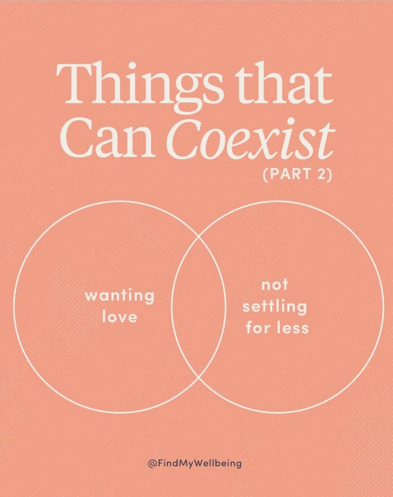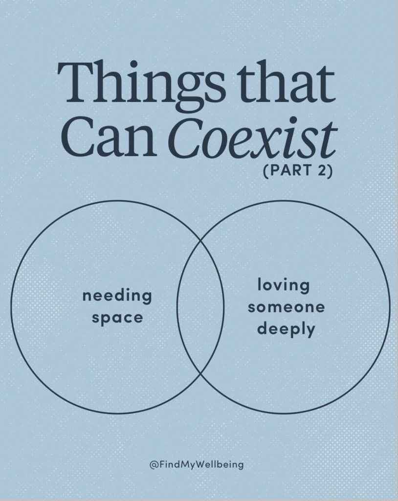 Life isn’t a box, for the most part it’s a spectrum. People get so caught up in being one thing or the other, when most things aren’t mutually exclusive. It’s just like the American Government. Manipulating you with bi-partisanship, when both parties are full of shit, trying to create a New World Order to everyone else’s detriment. Which one of these venn diagrams about coexistence are you dealing with now? Via: FindMyWellBeing