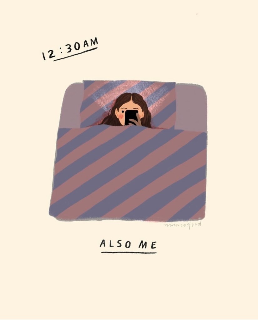 The struggle is real, we’ve all done this, prepare for an early night to end up distracted. Suddenly you’re scrolling through social media and hours of your life have passed by. It happens to the best of us. For me it’s trying to put down a good book, lying to myself that I’ll read one more page and be done.