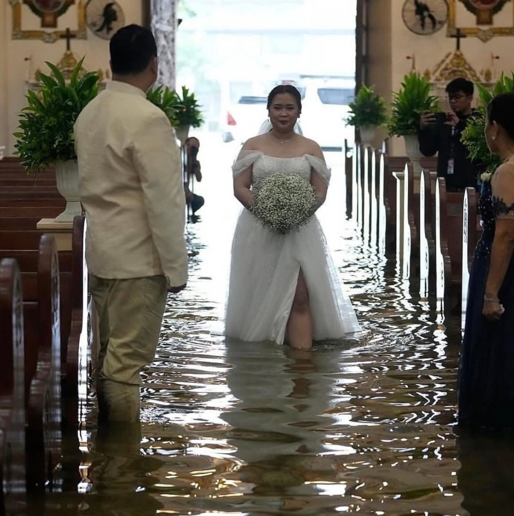 The way I would’ve had a complete TANTRUM. Bless this woman for keeping it together to walk down the aisle during Typhoon Wipha on her wedding day. There are no words. How would you react? Via: BabaDousa