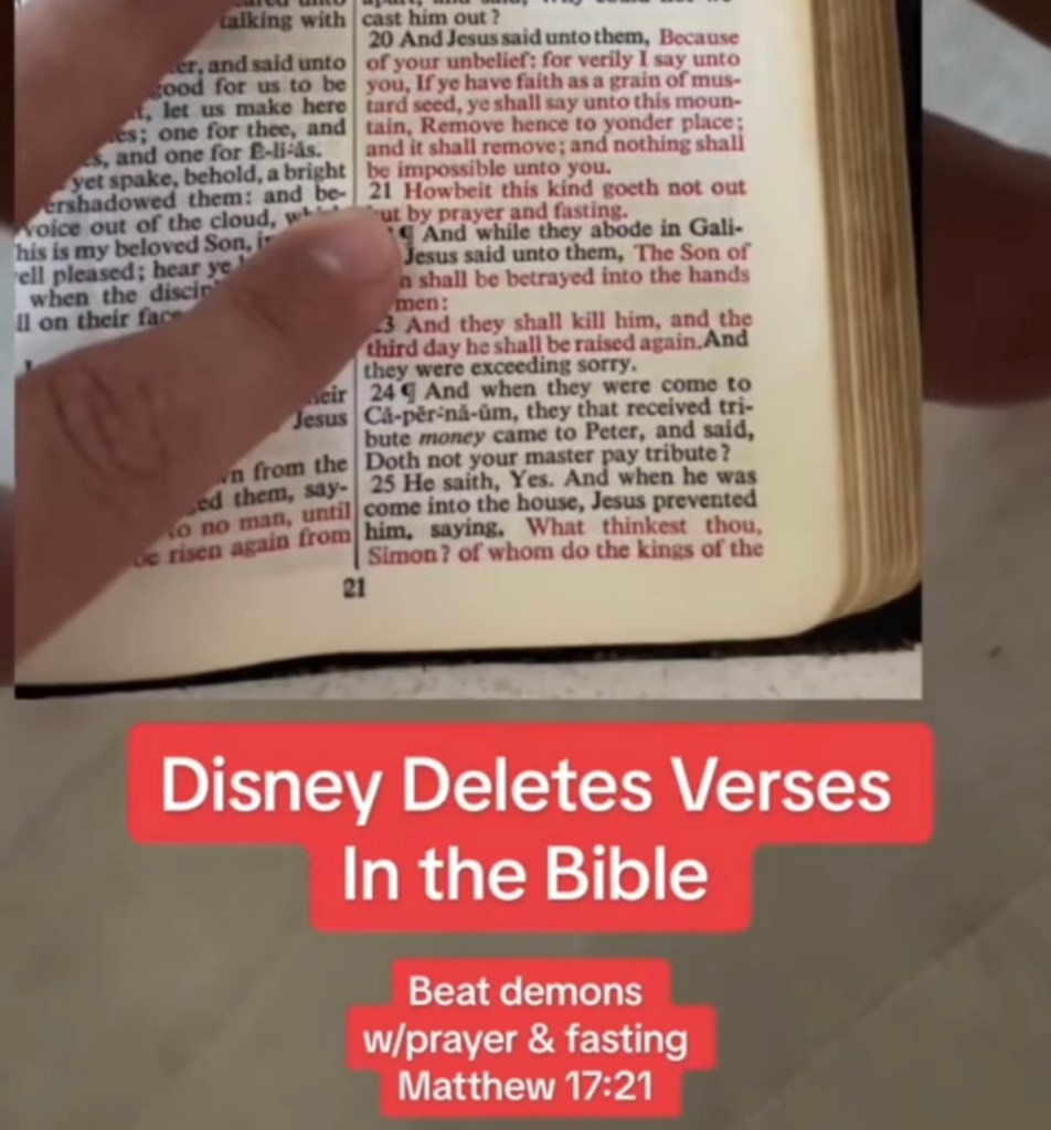To sate curious minds, the Bible’s that are deleting this verse are owned by Zondervan, which is owned by Hodder & Stoughton, a former subsidiary of The Walt Disney Company. If this wasn’t a surefire recipe to vanquish evil, they wouldn’t remove the passage. Enjoy this time, it’s death season. Everything works in my favor, Kali & Shiva. Via: For_BiddenKnowledg