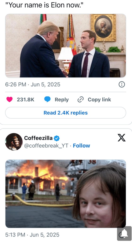 Elon Musk has apologized for washing Donald Trump internationally, but we’ll never forget that well deserved ass beating. For a second Elon was perfection, a shooting star lighting up our lives. This is my second and final round of the best memes about their breakup. Shoutout to the person who said AP history in 2100 is going to be insane, you see my vision. Those textbooks are going to be art tier, a golden age of drama. Lewis and I are way more fun than basic Mick Jagger (read Elon Musk Vs. Donald Trump). We’re giving GOD tier events in every sector.
