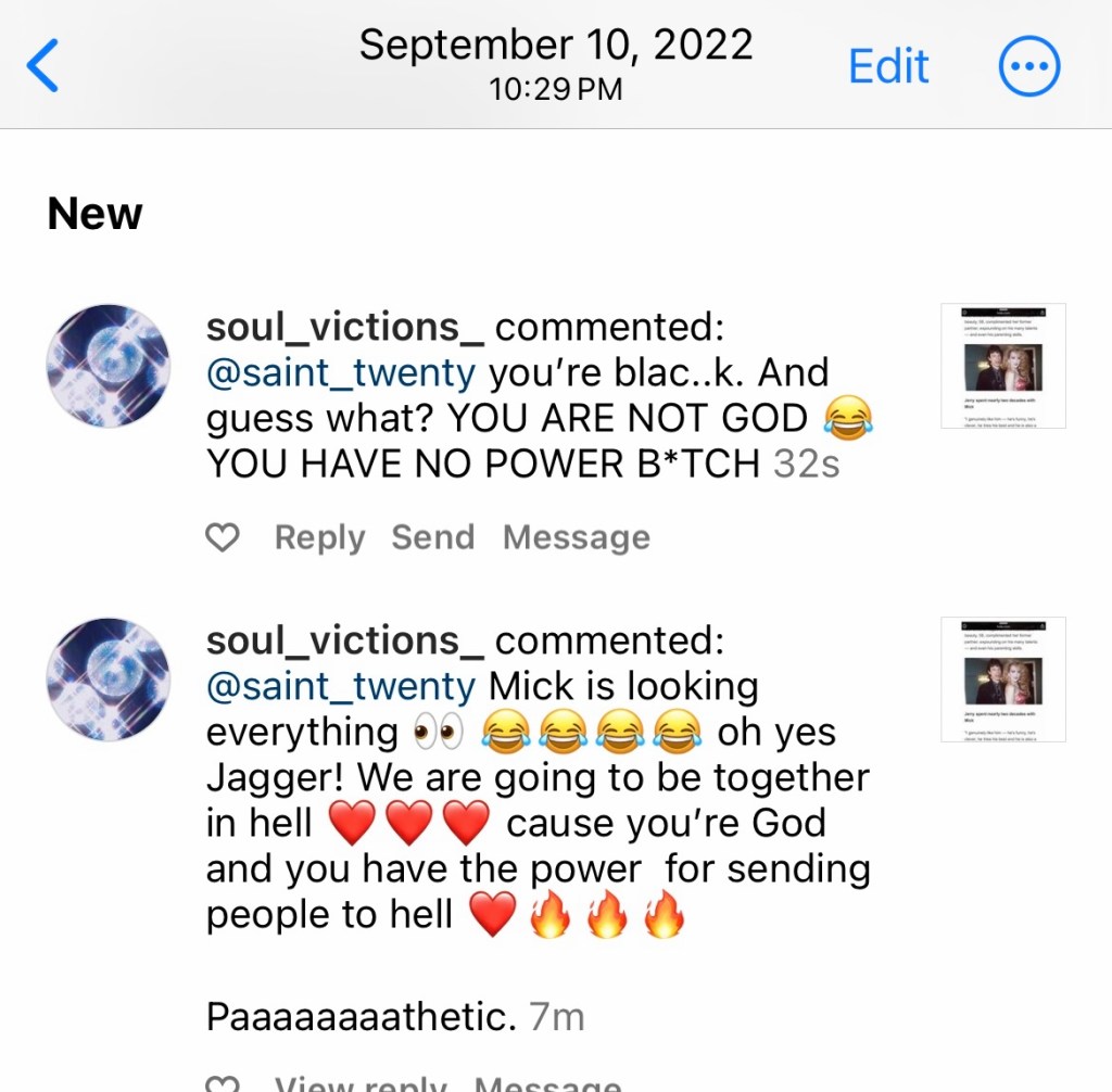 Mick Jagger’s allegiance to Nazi’s would make sense since his children are racists (read Georgia May Hates Black People), the Daily Mail is on his payroll (read Daily Mail’s History Of Hate), publishing anything he concocts, even if it’s contradictory. Melanie’s is ugly as all hell, has zero talent, can’t get any other suitors, Mick never wanted her (read Melanie Hamrick Provides No Satisfactionj, isn’t influential, was never prima ballerina, has an unchic body and uneven face, being white is the last frontier for her. She makes this abundantly clear from her Soul_Victions_account, telling me I’m black and powerless. The same account she stalked my twin Sebastian Stan from (read Melanie Hamrick Stalks Sebastian Stan).