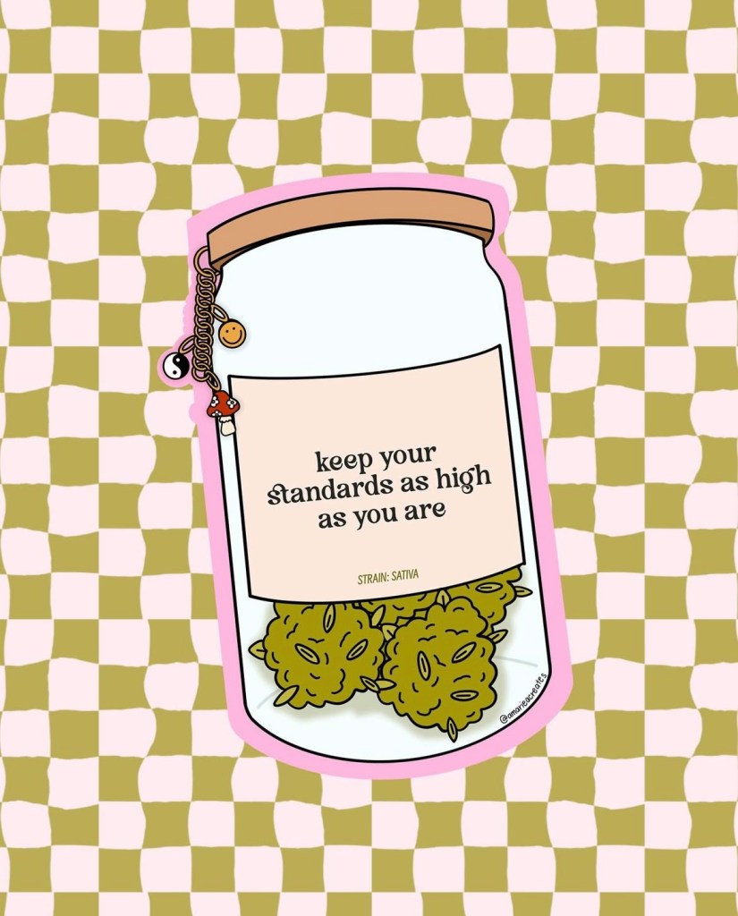 Ganja gifts us many things, including the ability to be grounded. Slowing us down, chilling us out. For this I am eternally grateful, it puts my mind on pause when it races. It’s like meditation, when I’m not mediating. Thank you for your service. Which weed jar resonates with you most? Artist: AmarieaCreates